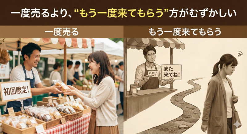 “初回で終わる顧客”を増やすより、“また来る顧客”を育てる方が、圧倒的にコスパが高い。