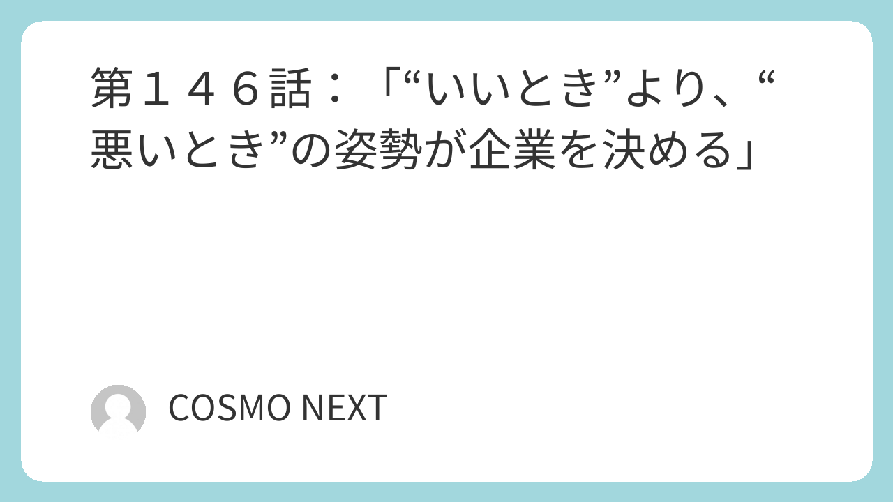 第146話:「“いいとき”より、“悪いとき”の姿勢が企業を決める」