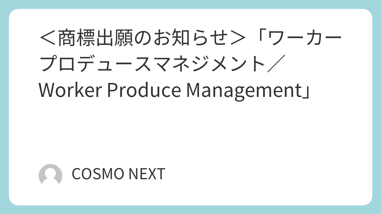 <商標出願のお知らせ>「ワーカープロデュースマネジメント/Worker Produce Management」